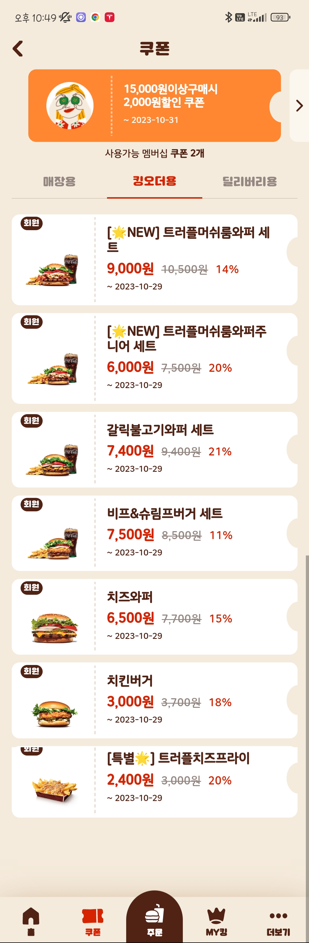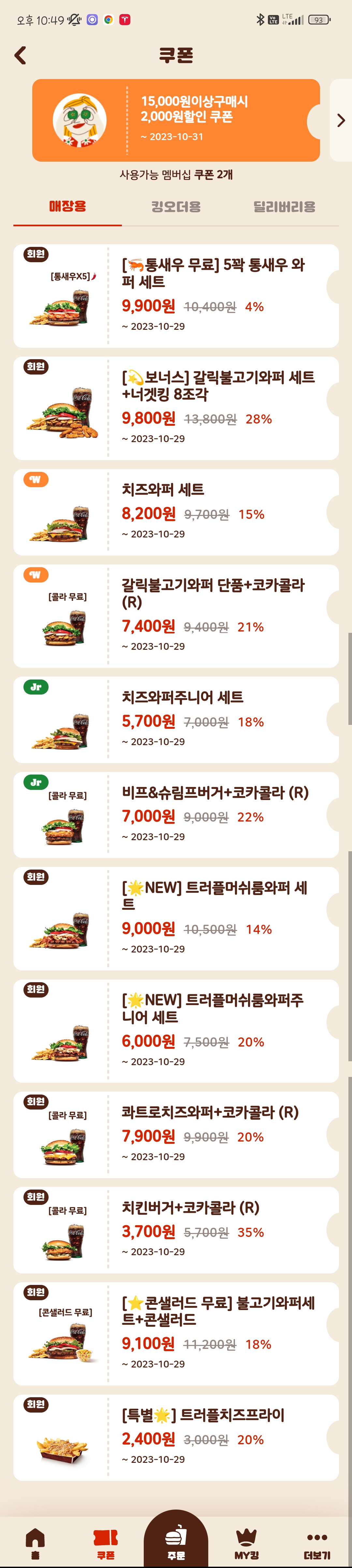 2023년 10월 4주차 버거킹 앱쿠폰 정보 공유합니다.
