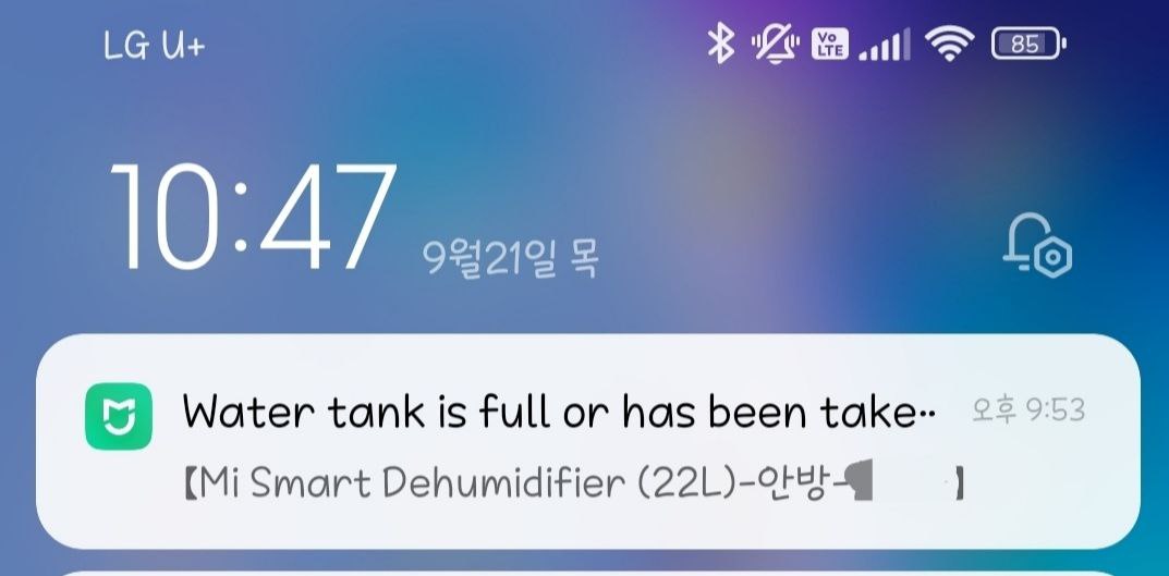 - 물이 가득 찼을 경우 알림음이 발생했고, 알림이 들리지 않는 곳에 있더라도 샤오미 앱으로 푸쉬가 와서 물이 찬 것을 쉽게 알 수 있었습니다.