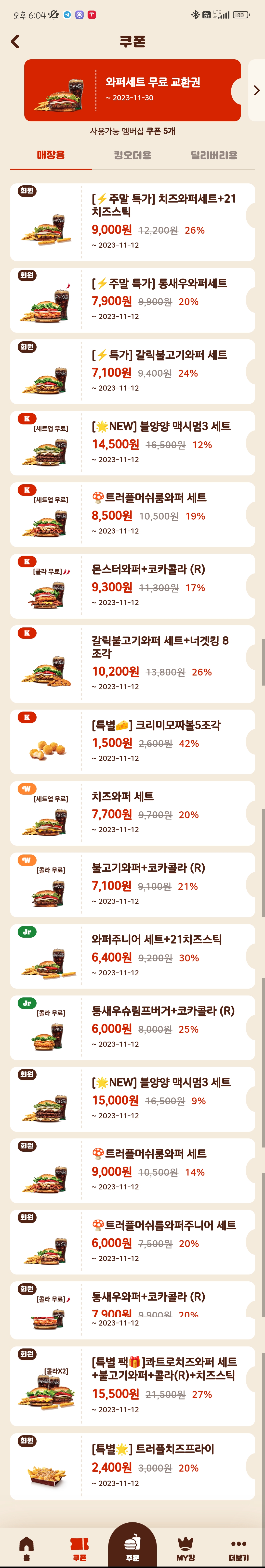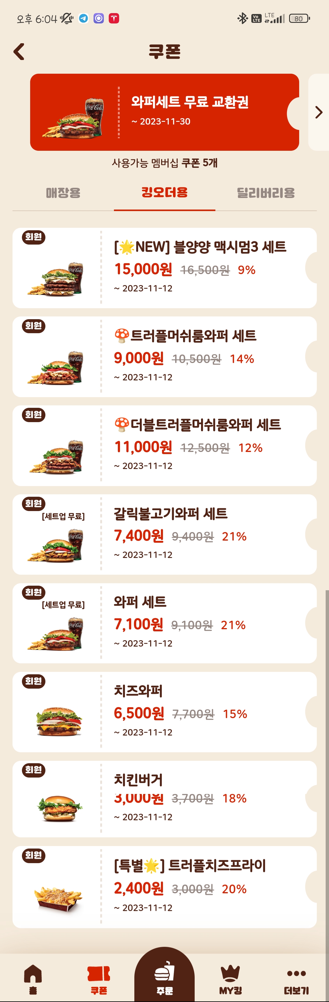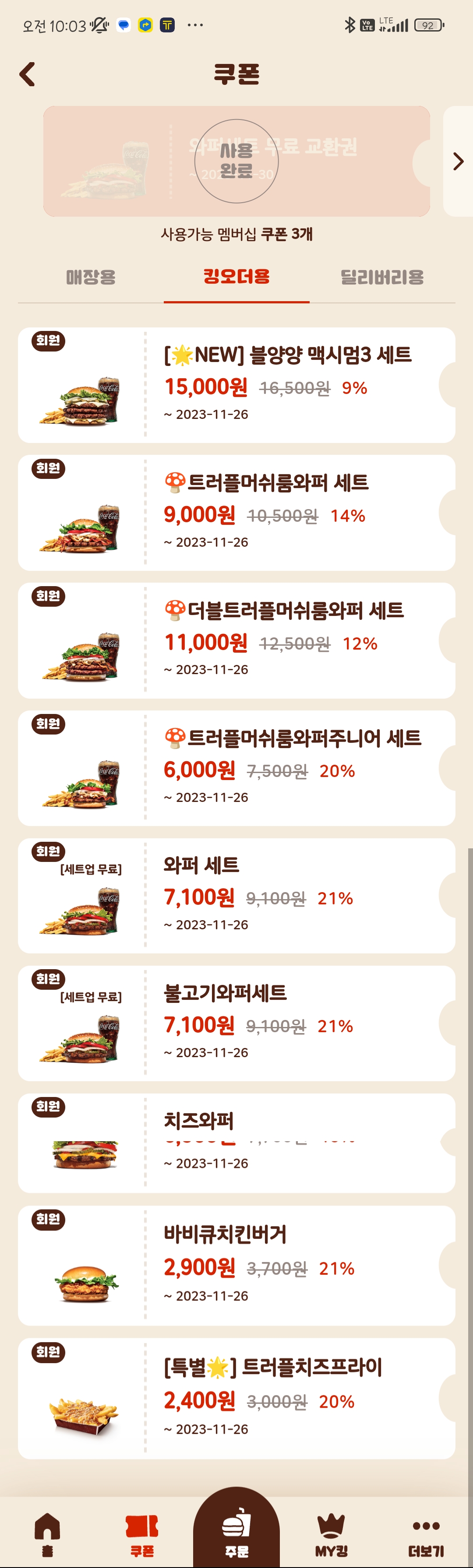 2023년 11월 3주차 버거킹 앱쿠폰 정보 공유합니다.